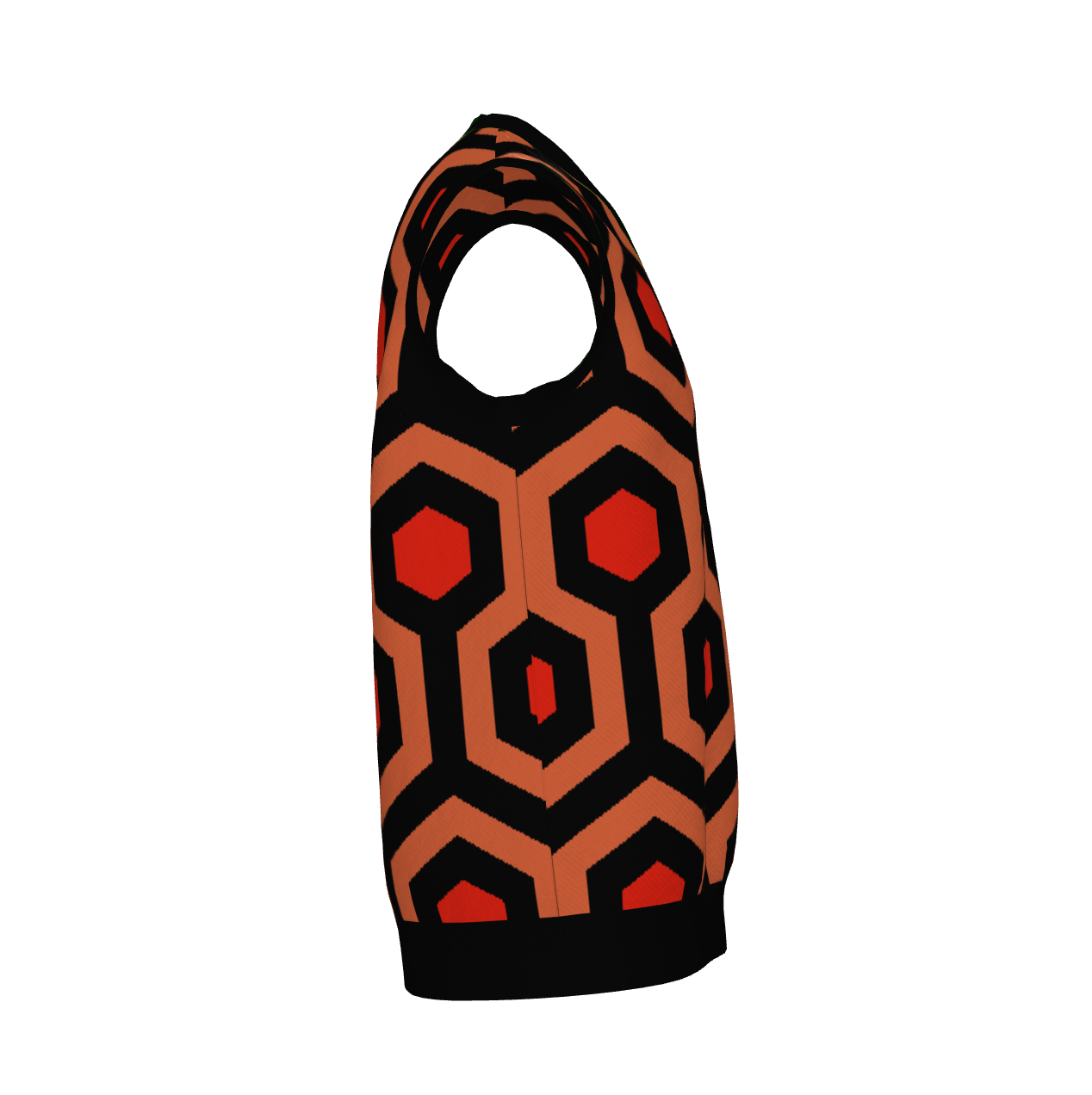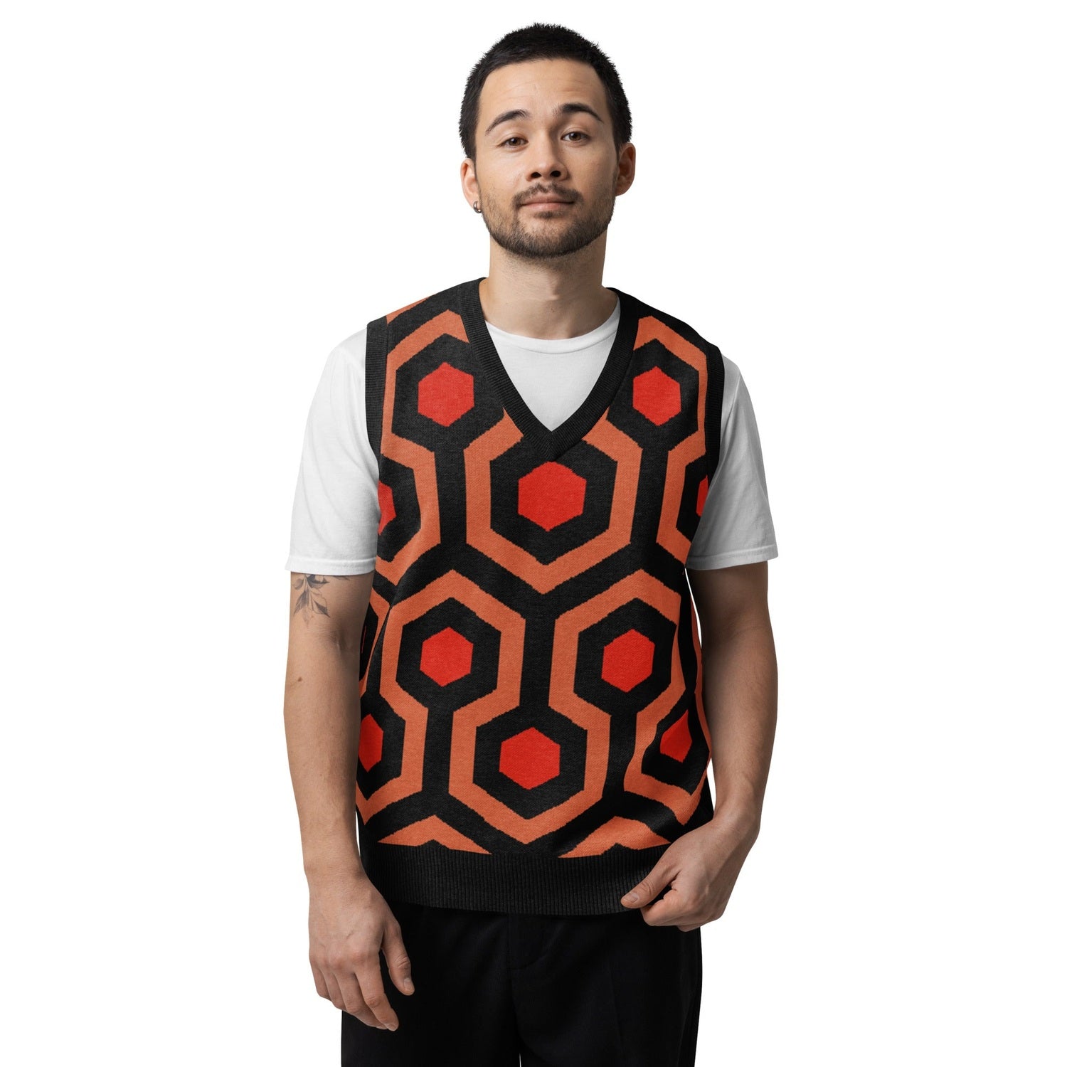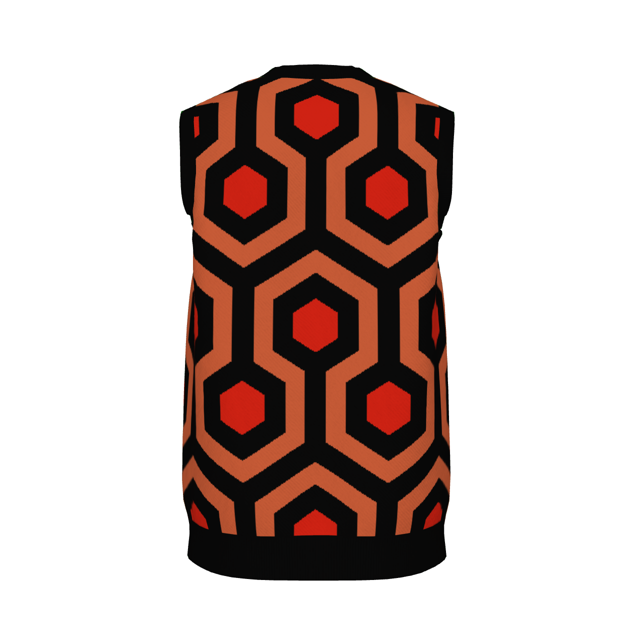 Overlook Hotel Carpet Pattern Knitted Sweater Vest – Horror Inspired V-Neck Knit