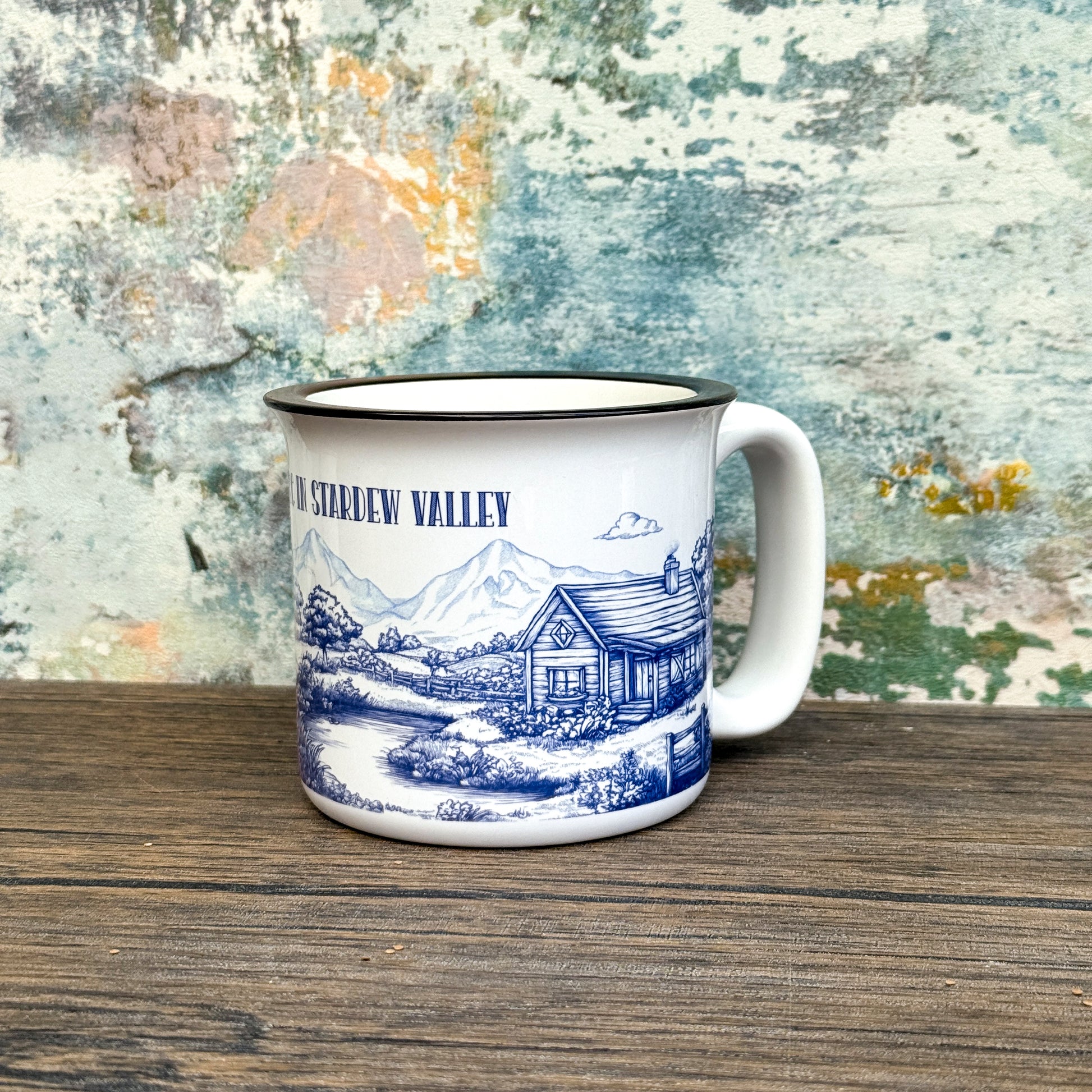 Stardew Valley Chinoiserie Campfire Mug - Blue and White Toile Ceramic Cup